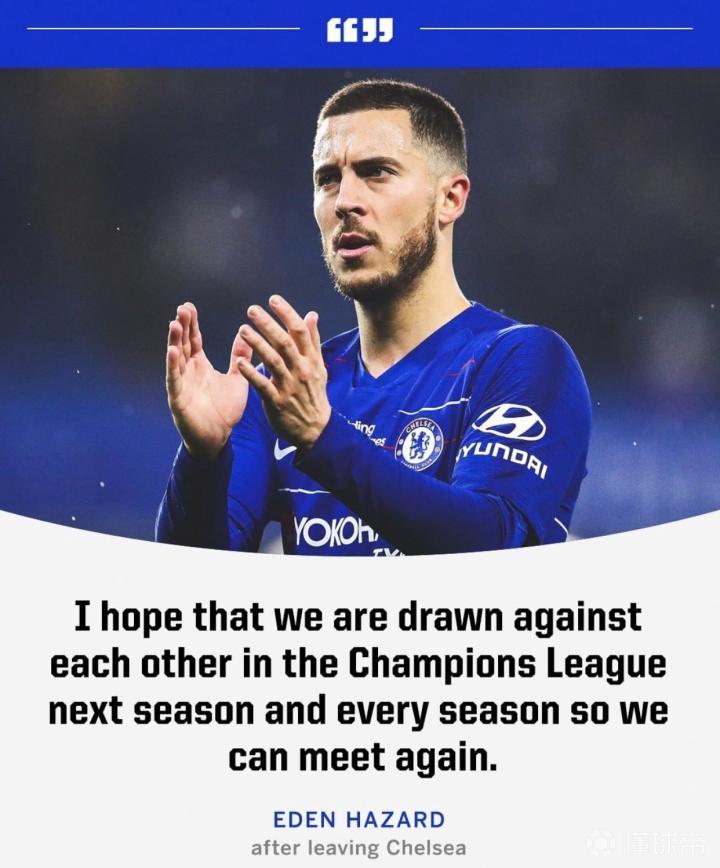 [espn]阿扎尔离开切尔西时曾在接受媒体采访时谈到, “我希望我们能在下个赛季和每个赛季的欧冠比赛中势均力敌,这样我们就能再次相遇。”