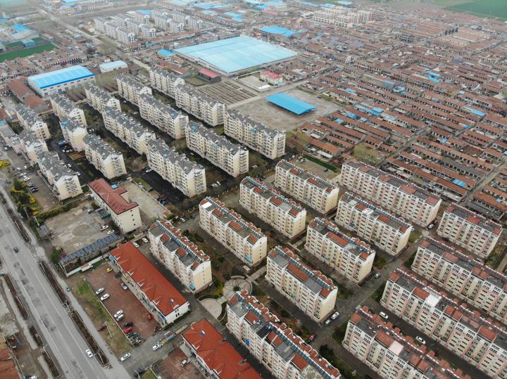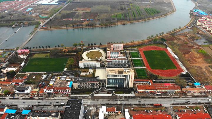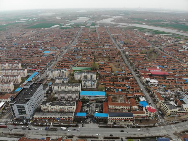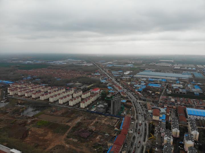 (铺集镇中心区,图中下方蓝顶建筑物为镇政府)
