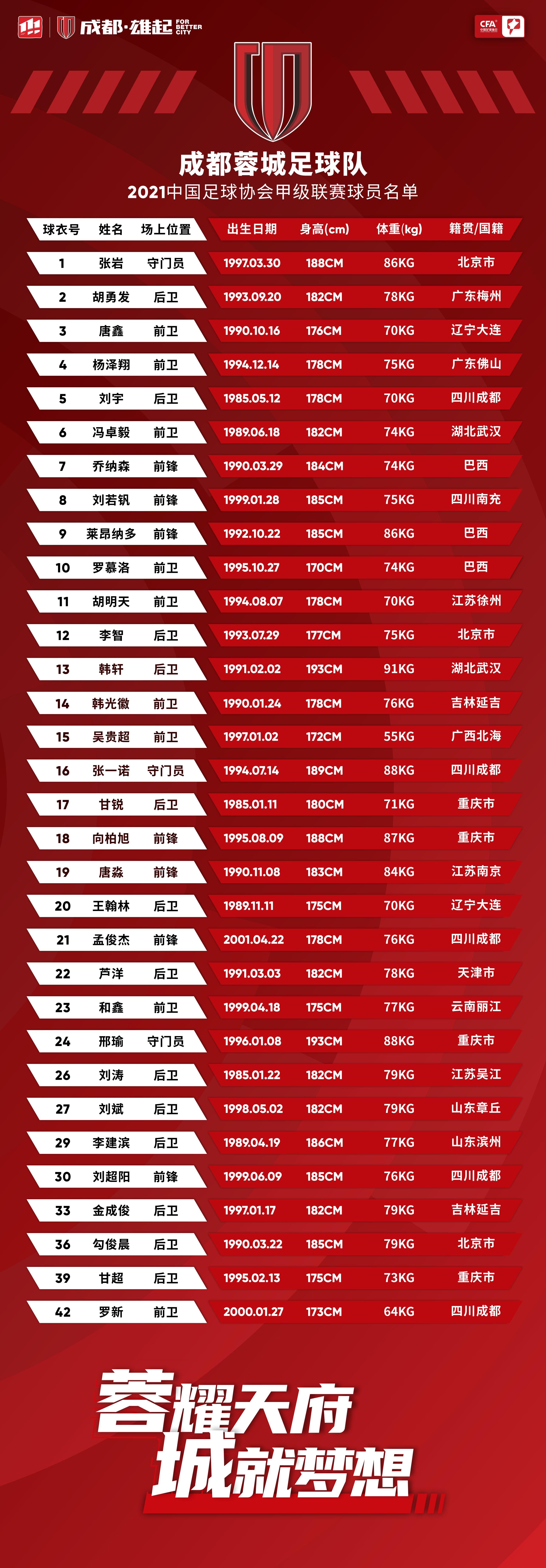 成都蓉城队2021赛季全家福及球员大名单蓉城将士...成都蓉城足球俱乐部 @懂球帝2021-04-16 19:37成都蓉城队2021赛季全家福及球员大名单 蓉城将士,披甲上阵 “蓉”耀天府,“城”就梦想展开更多