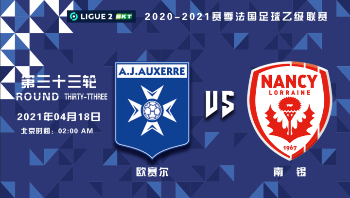本轮对手南锡赛季前半段状态欠佳,冬歇期前排名仅仅高出降级附加赛区域。但该队进入2021年发挥有了不小起色,以16轮28分的成绩跃居积分榜上半区。在3月中旬客场面对领头羊特鲁瓦时,南锡爆出大冷打出了一场5比1的大胜,令整个法乙联盟为之侧目。