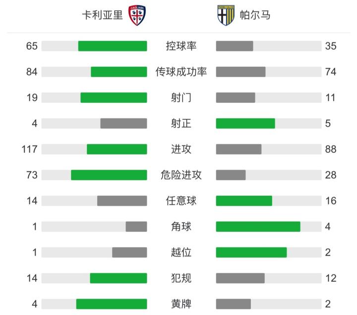 卡利亚里4-3逆转帕尔马结束五轮不胜,切里替补绝杀