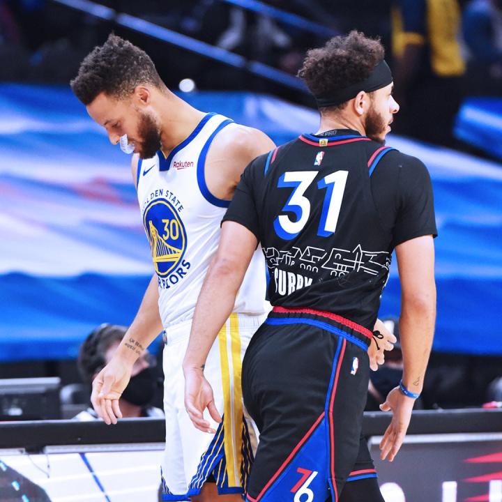 库里面对弟弟毫不手软,命中压哨三分,首节战平