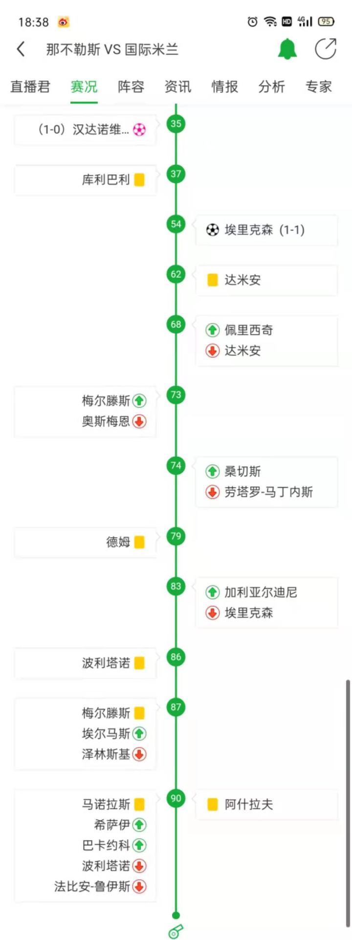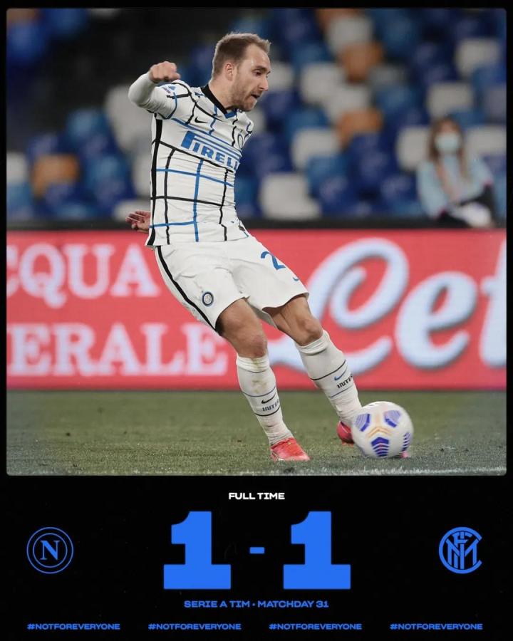 北京时间昨日凌晨,国米客场1-1那不勒斯。
