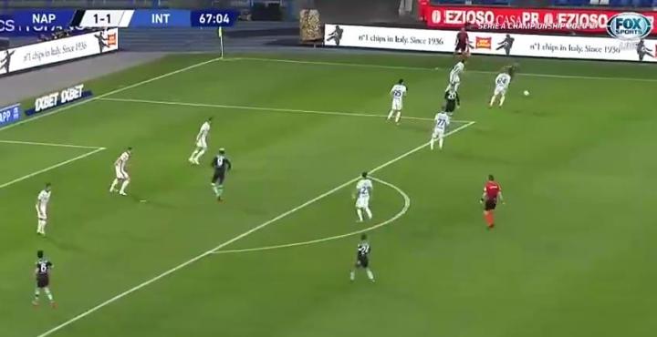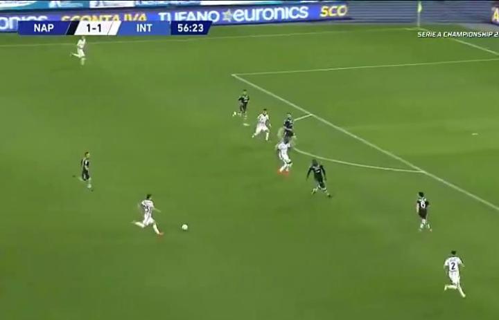 那不勒斯利用禁区前沿的远射,尝试威胁国米大门。