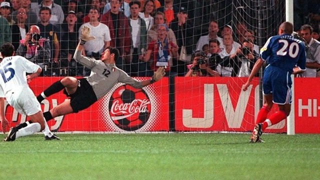 加时赛中,皮雷在左侧一路突破并摆脱三名意大利后卫的防守,他的传中找到了中路的特雷泽盖,后者大力抽射得分,法国凭借这个金球拿到了欧洲杯的冠军。