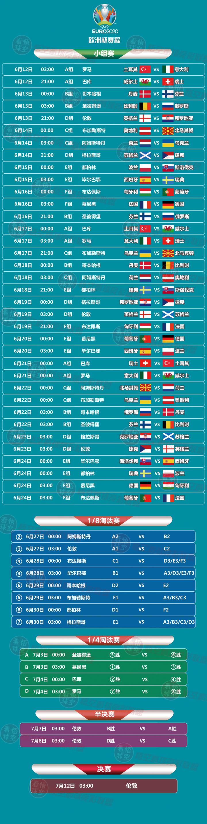 欧洲杯赛程完整版(点击收藏)