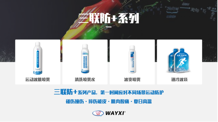 威习运动冰肌喷雾是由中山威习科技自主研发设计,专业为各类运动项目的运动员、爱好者提供高效应急冰敷处理的运动防护喷雾装备。