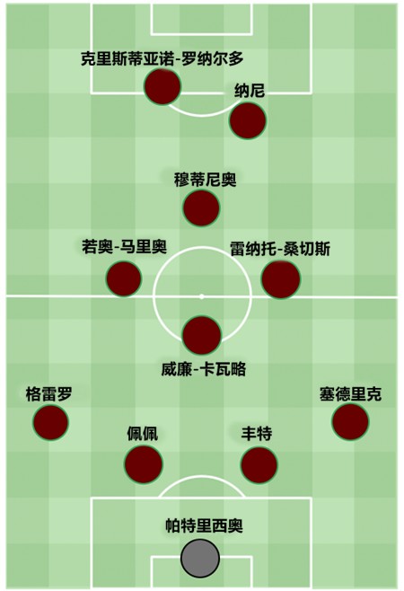 Squawka评分最高球员:C罗、纳尼、拉斐尔-格雷罗、夸雷斯马、佩佩