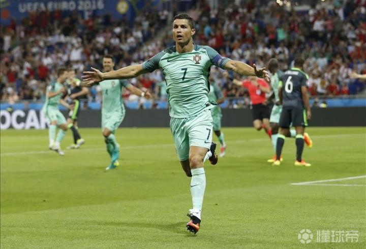 (图)C罗在对阵威尔士的比赛中庆祝进球