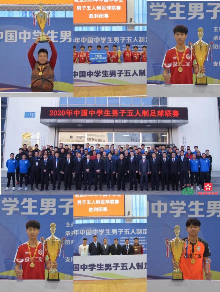 从广东省五人足球协会会长刘孝五的朋友圈获悉,今天深圳第二实验中学五人足球队获得全国中学生五人足球冠军凯旋而归。小编及时采访会长,他说4月14-21日在山东威海由中国中学生体育协会主办的“中国中学生男子五人制足球联赛”在山东外事职业大学体育馆举行,全国有20个省市自治区的五人足球冠军学校队聚在这里交锋。