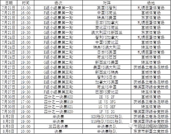 中国VS巴西,7月21日16点,仙台市宫城体育场