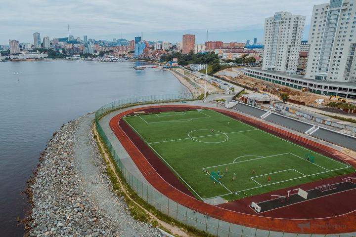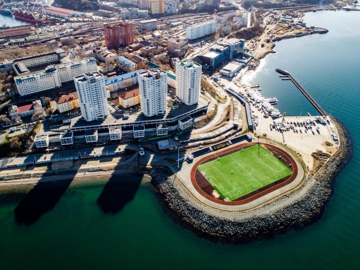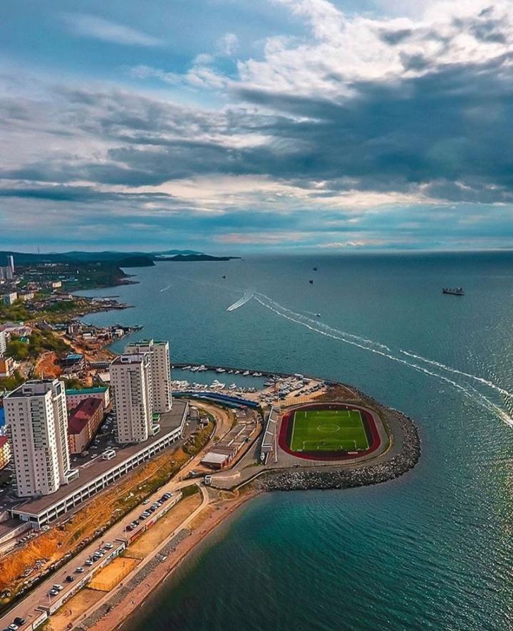 俄罗斯西伯利亚滨海城市符拉迪沃斯托克(海参崴)的一个球场,坐落在日本海海滨