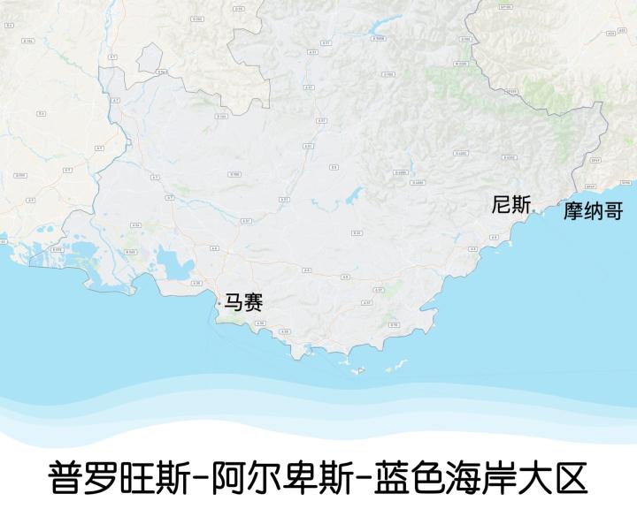 奥弗涅-罗讷-阿尔卑斯大区向南是普罗旺斯-阿尔卑斯-蓝色海岸大区,这里南临地中海,隔海与非洲相望,是法国气温比较高、文化比较多元的地区。