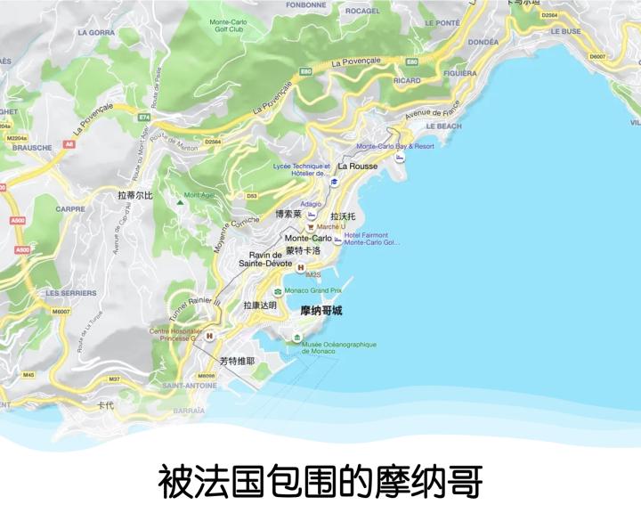 摩纳哥是一座城市,也是一个国家——摩纳哥公国,但整个国家三面被法国包围,南濒地中海,国土面积仅仅2.08平方公里,全国只有几万人,和梵蒂冈、圣马力诺和列支敦士登一样,是世界上为数不多的袖珍国。摩纳哥同法国关系极为密切,两国于1861年、1918年签订的2份条约规定摩纳哥在完全尊重法国政治、经济、航海和军事利益的前提下行使主权,法国负责保障摩纳哥的主权和领土。但2002年两国签署的新条约大大提高了摩纳哥处理本国外交关系的权限,不阻止其他国家在摩纳哥设立使馆,我国也于2006年和摩纳哥建立了大使级外交关系,由驻法国大使兼任驻摩纳哥大使。