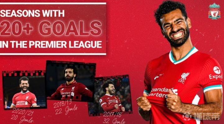 自2017年夏天加盟利物浦以来,萨拉赫最近4个赛季里有三个赛季英超进球达到20+,据利物浦官方统计,萨拉赫成为红军队史首位英超三个赛季进球20+的球员。