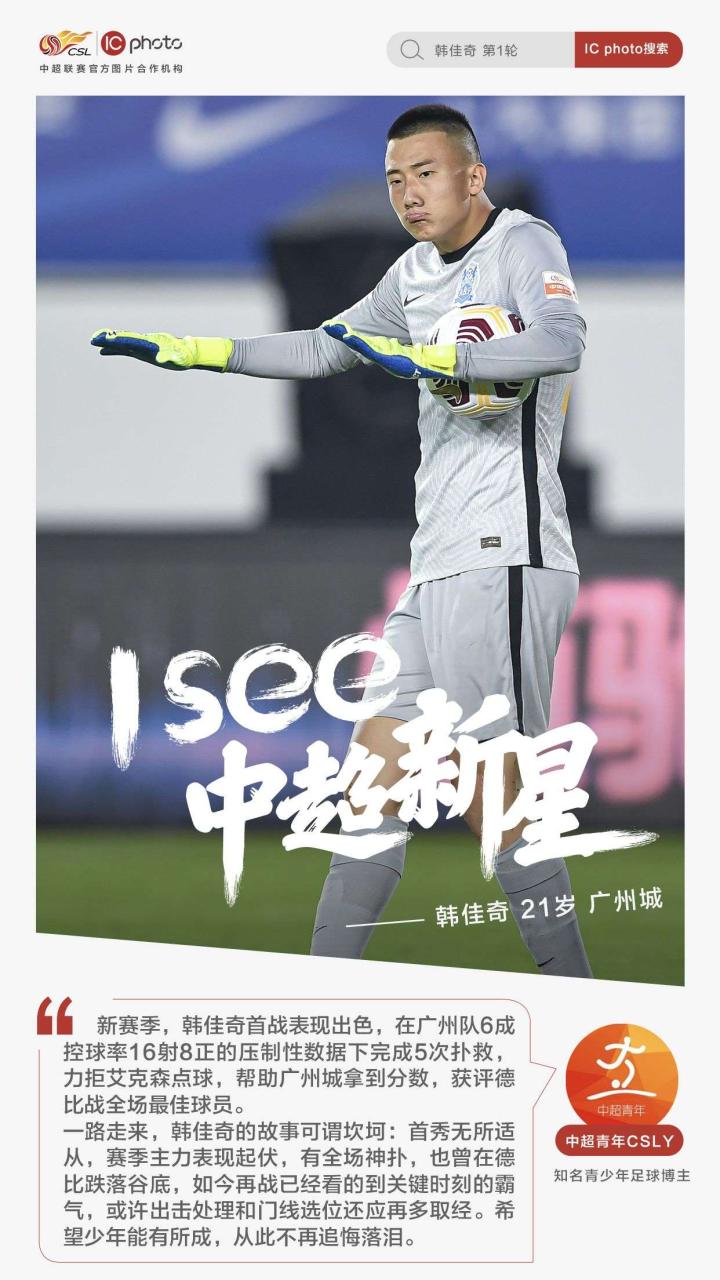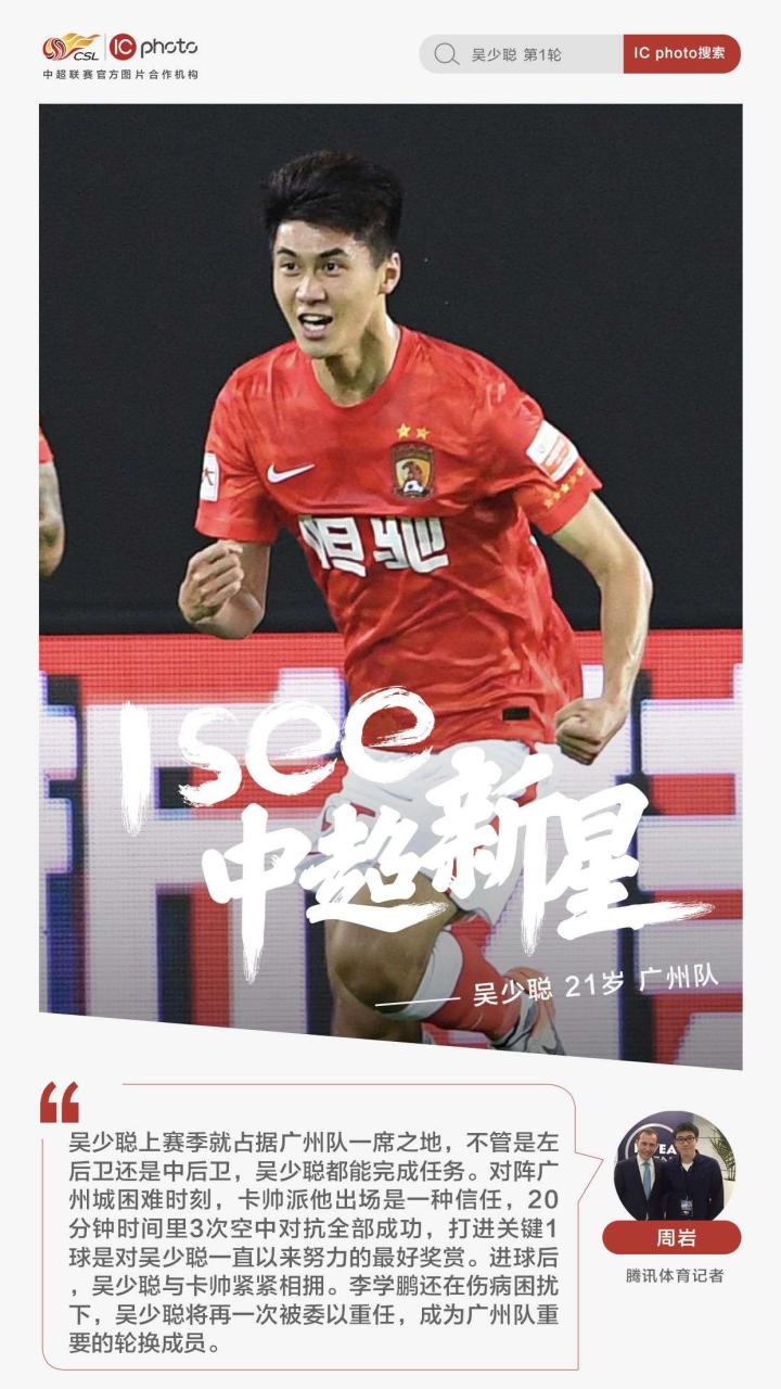#I see 中超新星# 2021赛季中超联赛第1轮的较量已经结束,又有哪些新人闪耀赛场?各路大咖齐力推荐,看看有没有你心中的中超新星! 【周俊辰,21岁,青岛队】 推荐人@Asaikana :球队中的青春力量,不断撕扯对方防线,并打进本赛季青岛队首个进球,博得三分。 【吴少聪,21岁,广州队】 推荐人@周岩Sergio :困难时刻上场,20分钟时间里3次空中对抗全部成功,打进关键1球。 【方昊,21岁,武汉队】 推荐人王骁:中超首秀信心比较足,善于前插,给球队前场带来活力和冲击力,未来发展还是有很大的可能性。 【韩佳奇,21岁,广州城】 推荐人@中超青年CSLY :新赛季首战表现出色,完成5次扑救,力拒艾克森点球,获评德比战全场最佳球员。 【阿布拉汗,19岁,上海海港】 推荐人@青训现场IC方亮:担任组织枢纽打满全场!在防守补位方面存在感极强,很大程度上解放了穆伊,阿布拉汗未来值得期待。