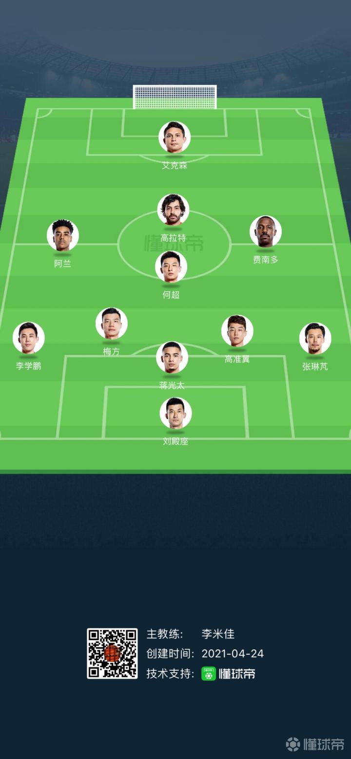 这样如何?541阵型,用四个巴西裔专门打反击。这...李米佳 @懂球帝2021-04-25 15:42这样如何?541阵型,用四个巴西裔专门打反击。这个阵容里没有U23,如果李学鹏伤还没好,那可以把左后卫换一下。展开更多