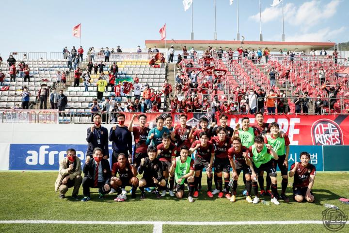 韩国足球新闻韩国当地时间4月24~25日,2021赛季韩国足球K2联赛第八轮展开争夺。此前联赛垫底的庆南FC依靠一场3-0的大胜,最终摆脱了垫底的尴尬。而在一场巅峰对决中,FC安养凭借开局17秒的闪电进球,最终在客场击败首尔衣恋,三连胜后积分榜升至第三位。