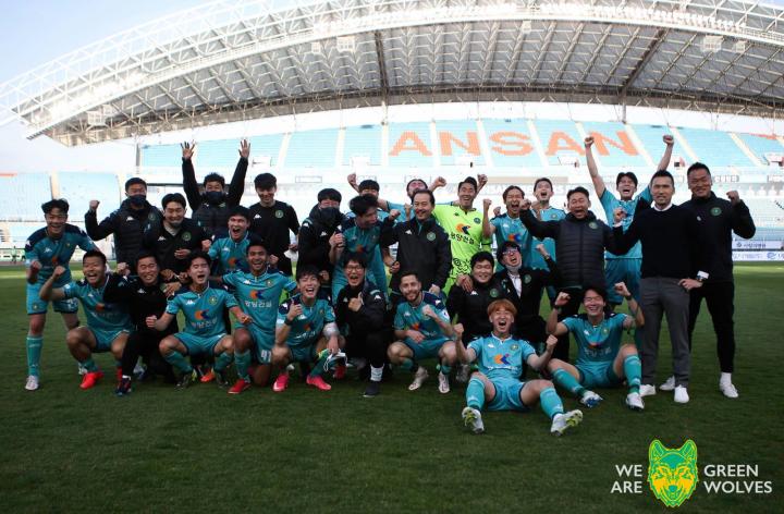 另一场比赛在安山Greeners和大田韩亚市民之间展开争夺,本场比赛前,大田韩亚市民连战连胜位居榜首,而安山则是紧追不舍,本场比赛也事关排名。4231阵型下的安山对阵352的大田,主场作战的安山踢的相当激进,并且完全压制住了大田。但由于上赛季三次交手,大田都笑到了最后,因此面对对手的高压,大田方面不以为然,还是耐心和对手周旋。本场比赛表现出色的无疑是安山的印尼右边后卫阿斯纳韦,上半场第22分钟他的任意球助攻崔建柱完成破门,但由于崔建柱越位在先进球无效。