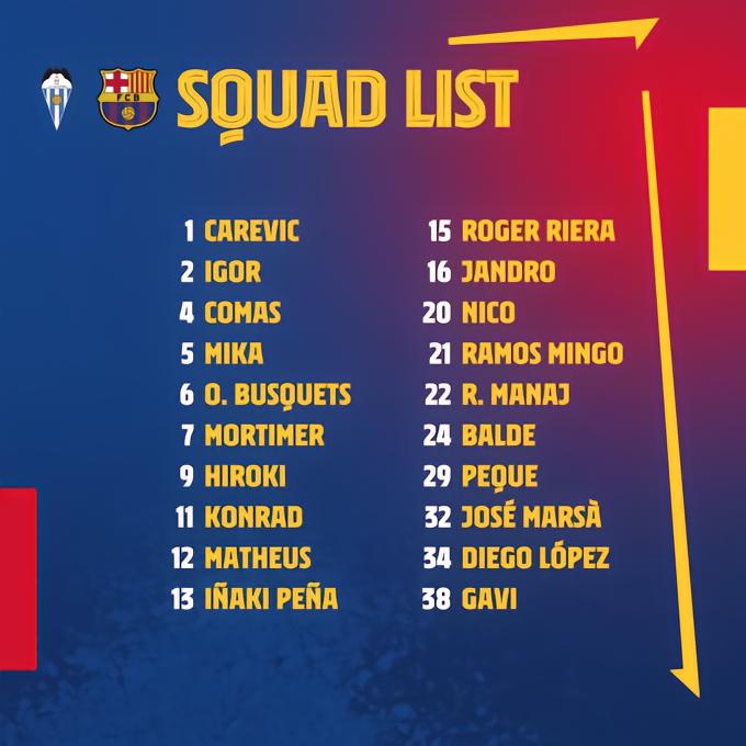 阵容:13-Iñaki Peña/5-Mika, 4-Comas, 21-Ramos Mingo, 15-Roger Riera/20-Nico Gonzalez, 12-Matheus Pereira, 16-Jandro Orellana/22-Rei Manaj, 29-Gerard ‘Peque’(min75, 9-安部裕葵), 11-Konrad de la Fuente