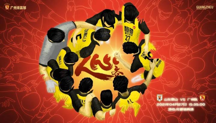 北京时间4月26日,广州队发布了中超联赛第二轮对阵山东泰山的赛前海报,主题是:人心齐。