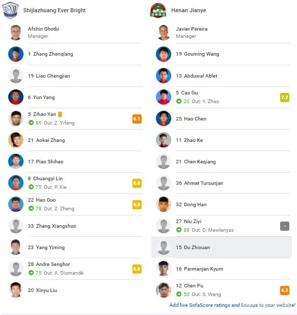 未上场替补:1-张振强、6-杨云、17-朴世豪、19-廖承坚、20-刘鑫瑜、21-张奥凯(U23)、23-杨一鸣、33-张祥硕(U23)