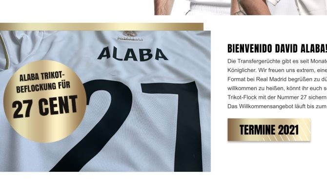 皇马基金会青训营在发给《埃菲社》的回应中表示:“如同你已经发现的一样,奥地利球星阿拉巴即将加盟皇马。这让我们很高兴,所以我们提供了阿拉巴的球衣出售。”