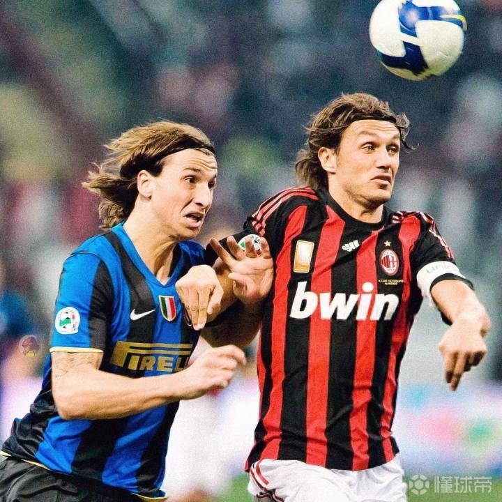 足坛老照片,经典的米兰德比,经典的米兰双雄球衣,伊布、马尔蒂尼。