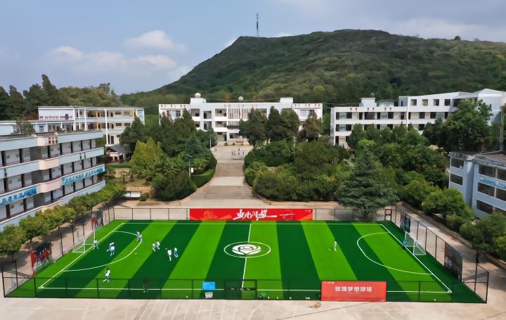 (图说:中国首个女足主题球场“玫瑰梦想球场”落地云南维则青联希望小学)