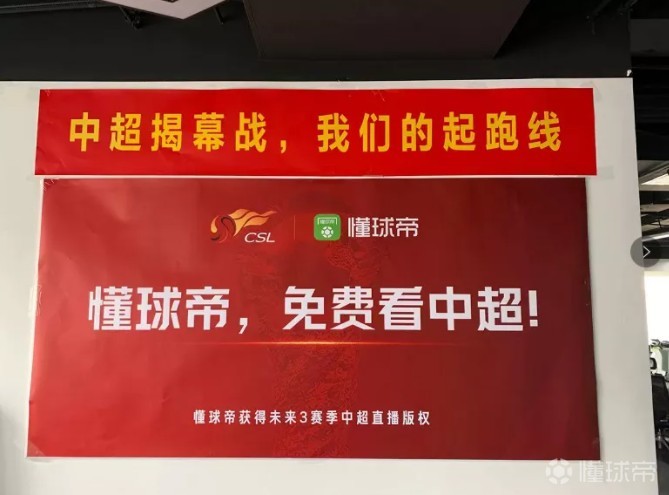 懂球帝办公区的中超宣传海报