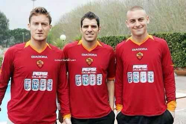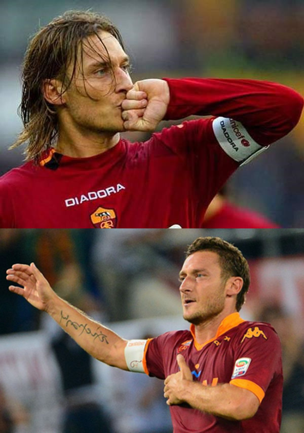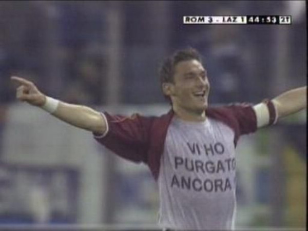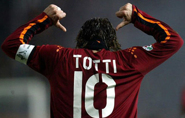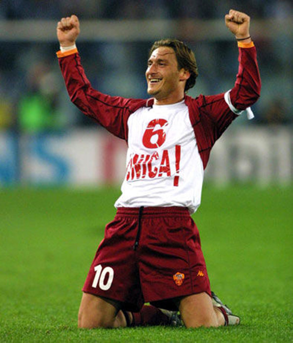 我:还记得2002年的一场罗马德比中,你在用勺子吊射戏耍了死敌拉齐奥后,来到场边庆祝时展示了写有“6Unica!(你是我的唯一)”字样的T恤,向当时还是女友的布拉茜表白,请问这个想法来自哪里?
