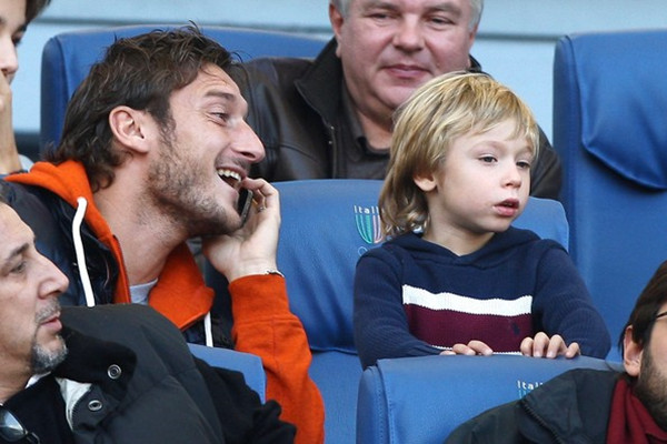 有一回托蒂和大儿子克里斯蒂安在家里看一场罗马队的比赛。