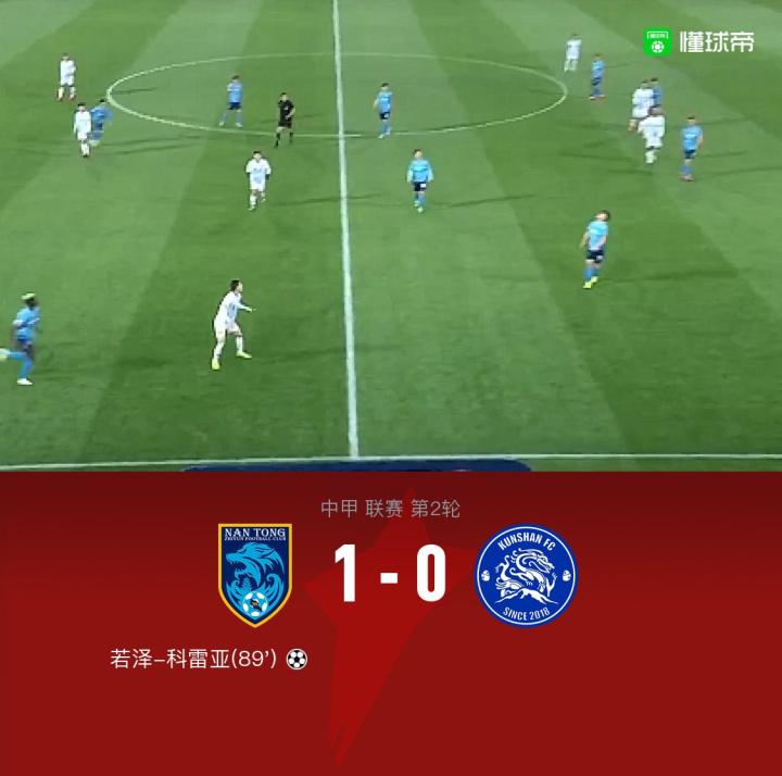 第88分钟,禁区外若泽-科雷亚远射绝杀,南通支云1-0昆山。