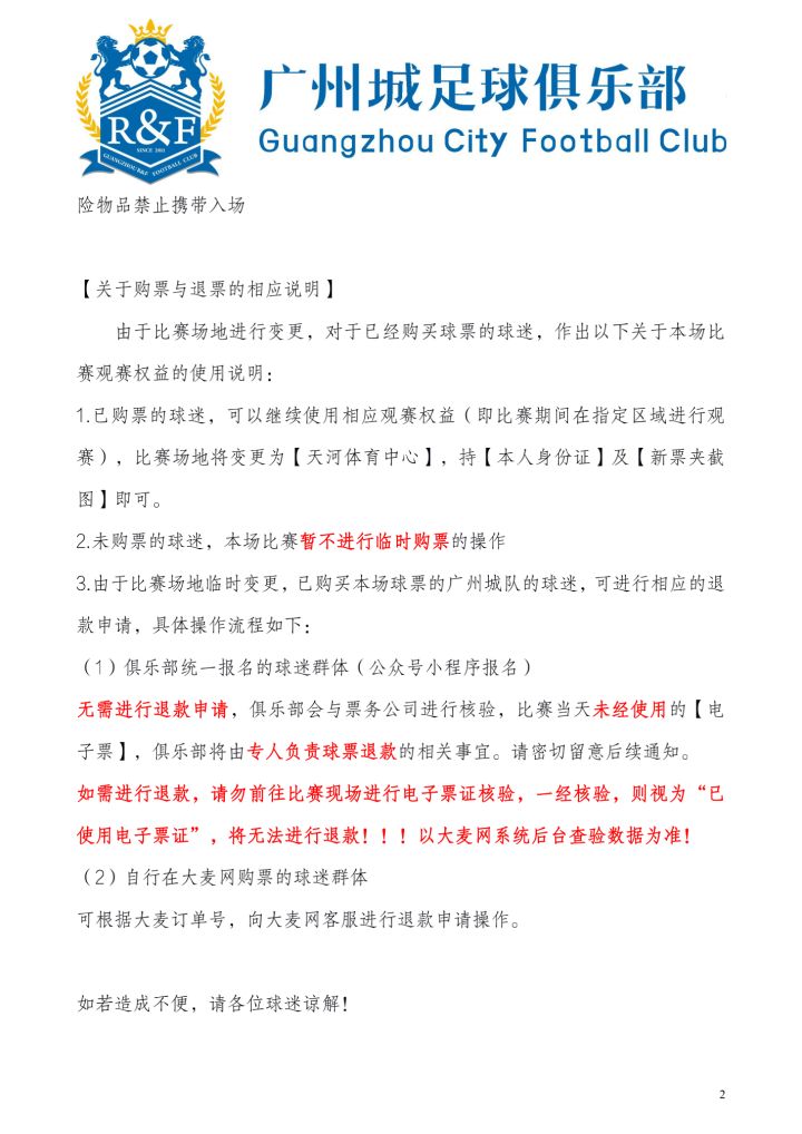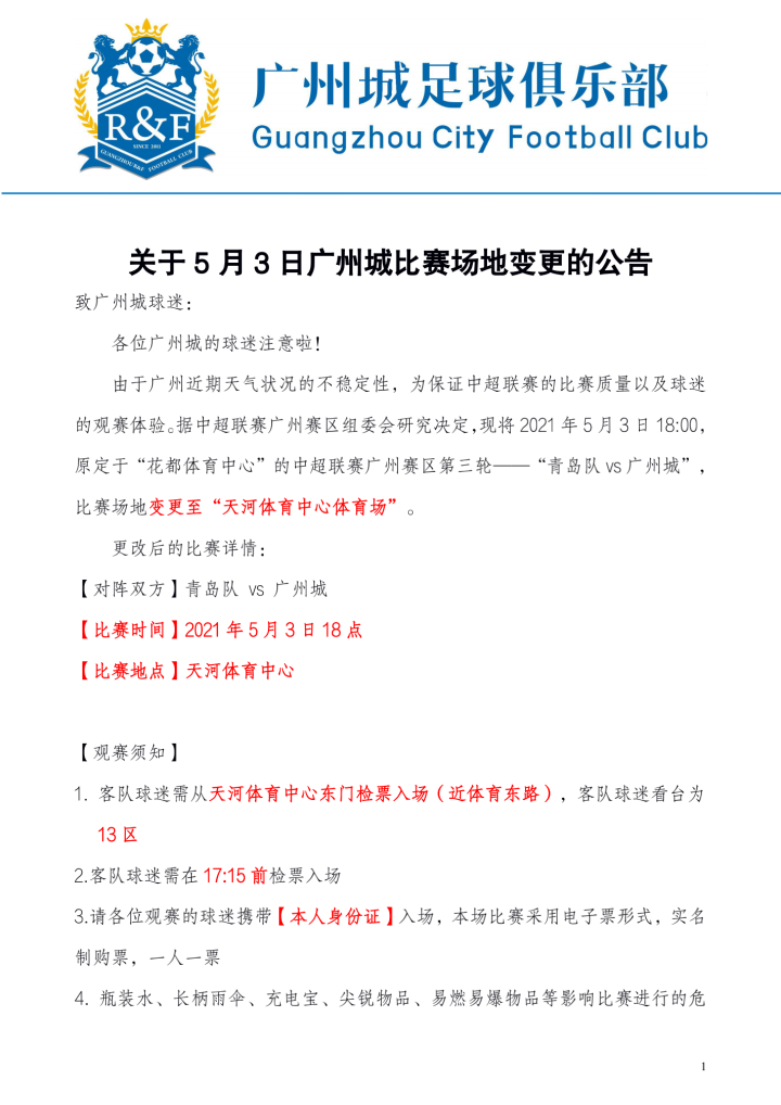 由于天气原因,5月3日原定于花都体育中心进行的中...广州富力足球俱乐部 @懂球帝2021-05-03 01:35由于天气原因,5月3日原定于花都体育中心进行的中超联赛,将改至天河体育中心进行。 现公布球迷观赛须知以及电子票证使用说明,详情如下。 感谢各位球迷的理解与支持!展开更多