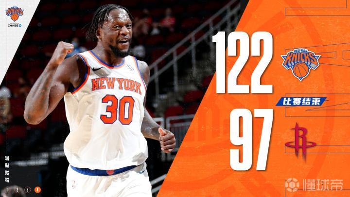 NBA战报:火箭97-122惨败尼克斯,兰德尔31+7+6,罗斯24+6+4