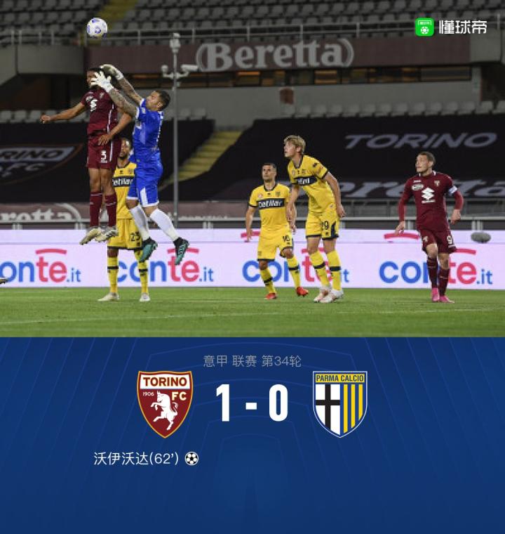 帕尔马0-1都灵提前四轮降级,沃伊沃达建功,贝洛蒂中柱