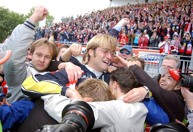 克洛普2001年接手球队以后,前两个完整的执教赛季都与升级差之毫厘,尤其是2002/03赛季联赛最后一轮,并列德乙第三的法兰克福在第93分钟的进球,使得美因茨以一个净胜球的劣势憾失升级机会,时任队员桑德罗-施瓦茨趴在草皮上痛哭不起的镜头,多少年后再看依然让人心酸。