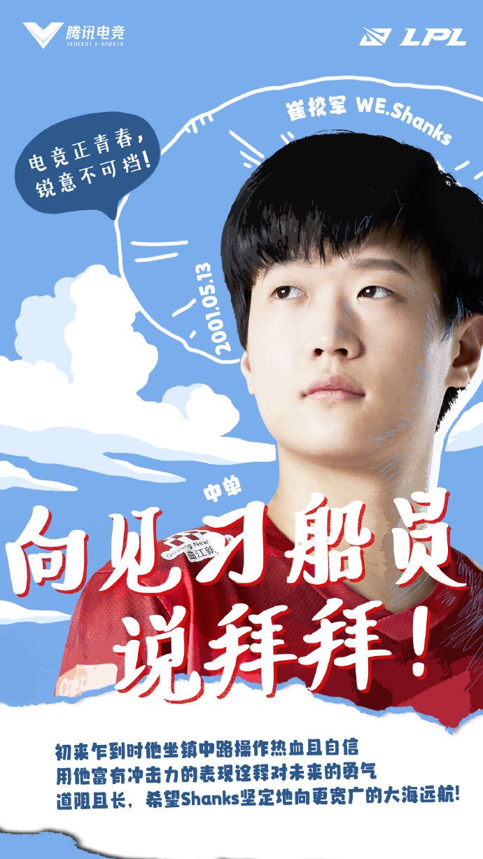 五四青年节,腾讯电竞发布LPL6位表现出彩的“00后”选手海报 峡谷全视野 峡谷全视野2021-05-04 23:13腾讯电竞:2021LPL赛场之上,新鲜血液的融入是激情、是碰撞,他们初到联盟便敢打敢拼,用惊艳的赛场表现征服了每一位观众今天是五四青年节,FPX.Beichuan、IG.Xun、LNG.M1kuya、SNSUP、滔搏zhuo、WE.shanks这6位表现出彩的“00后”青年选手,哪位最让你惊艳呢?展开更多