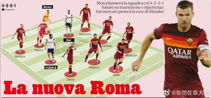 鸟叔罗马预计主打阵,4231,想从热刺买戴尔和霍...