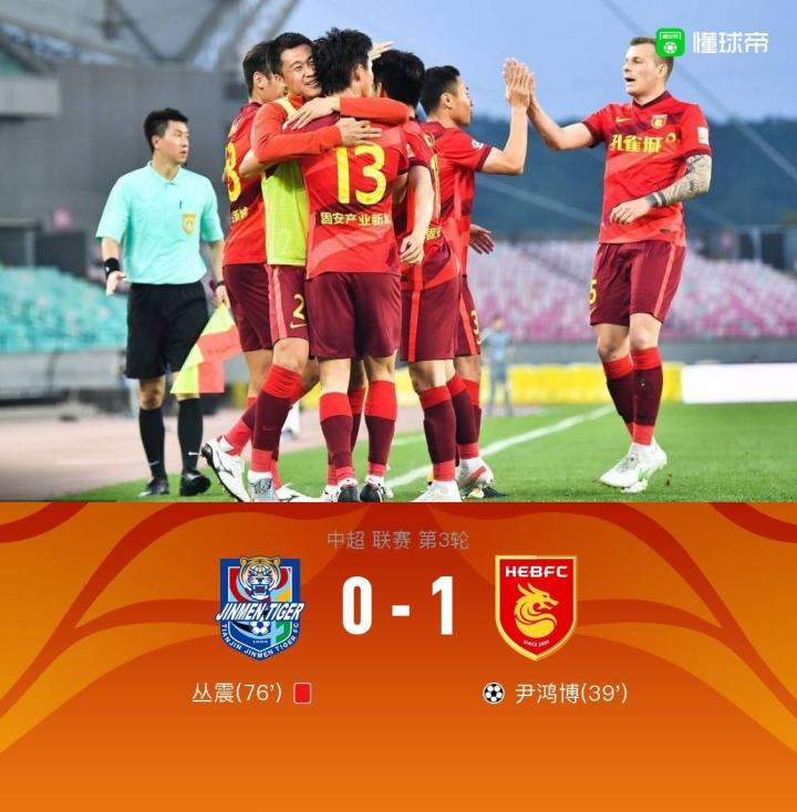 北京时间5月5日18:00,中超第3轮继续进行,天津津门虎对阵河北,本场主裁判为黄翼。上半场,马尔康头球回摆助攻尹鸿博抽射首开记录。下半场,丛震飞踹梅米舍维奇被直红罚下。最终,津门虎0-1不敌河北遭遇三轮不胜,后者则迎来两连胜。