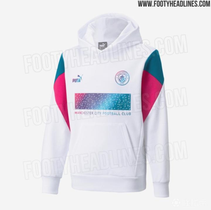 此外,FootyHeadlines还透露,这件球衣的灵感来源于曼城俱乐部此前发布的一套卫衣(下图),二者的设计思路基本一致。此外,球衣上预计还会添加有近年流行的泼墨元素,一切还等待官方发布为准。