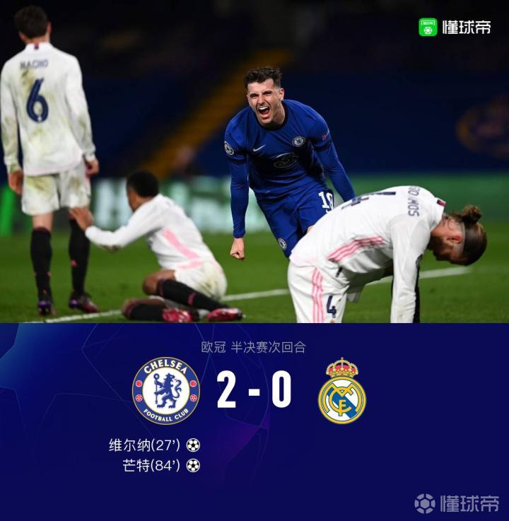切尔西2-0皇马,总比分3-1和曼城会师决赛,维尔纳、芒特破门