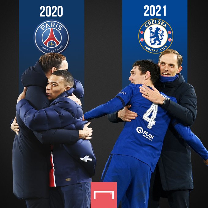 切尔西主帅图赫尔成为欧冠史上首位连续2个赛季率领两支不同球队打进决赛的主教练。此前有3位主教练带领不同球队连续2+年打进欧战决赛:埃里克森(1982/哥德堡/联盟杯;1983/本菲卡/联盟杯);库珀(1999/马略卡/优胜者杯;2000/瓦伦西亚/欧冠;2001/瓦伦西亚/欧冠);贝尼特斯(2004/瓦伦西亚/联盟杯;2005/利物浦/欧冠)。