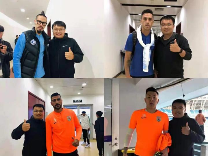 时任天津城建大学足协主席因此留下了数张与中超球员珍贵的合影。