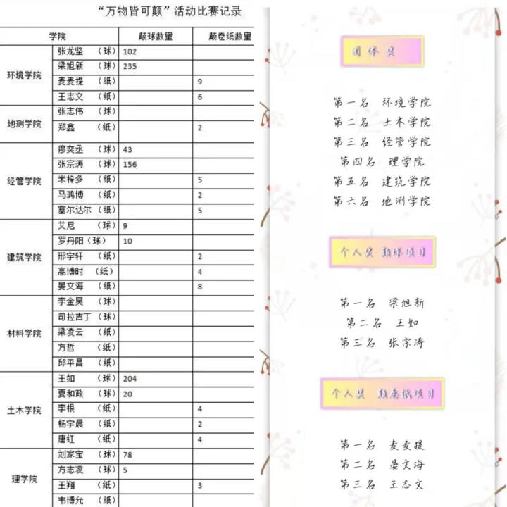 去年由于受到疫情影响,新生杯和足协杯赛事被迫延期,但在疫情期间,天津城建大学足协也没有停下脚步,举办了“万物皆可颠”线上颠球大赛,以腾讯会议的方式进行颠球、颠卷纸两项比赛,记次数决胜,还以学院为单位进行团体总积分优胜评选。