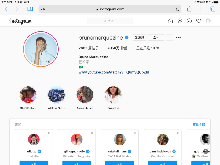 附上布鲁娜·马尔科辛的instagram: