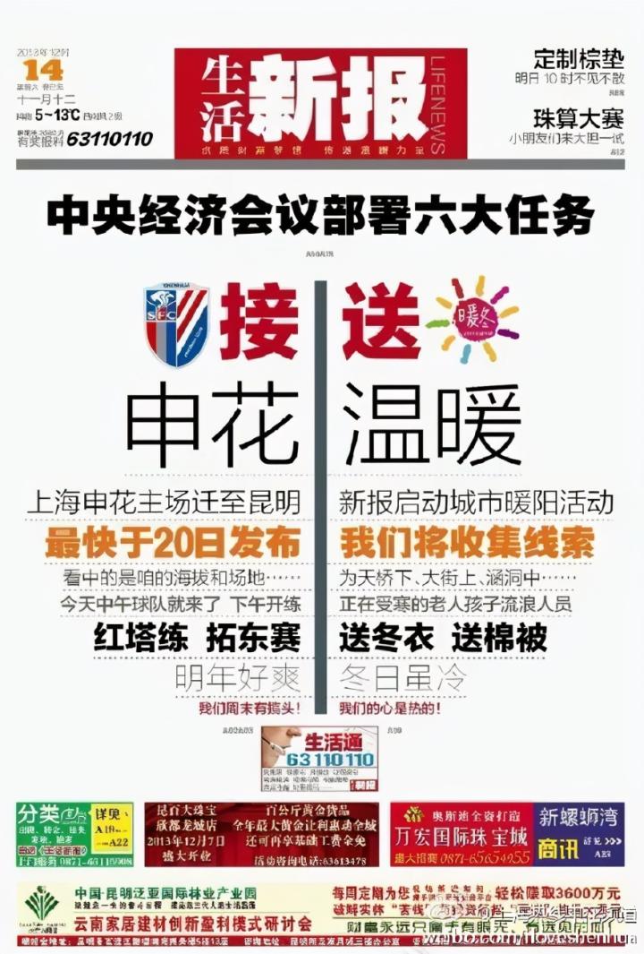 2013年的申花,赛季负分起步,排名艰难爬升。尽管靠着一次次坚韧的绝平与逆转获得了一个“落后的申花惹不起”的名头,尽管加上那扣去的6分最终的排名已经几乎进入了亚冠区,但在赛季末,球队可能远走云南的消息让原本就在寒冬的上海足球雪上加霜。