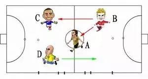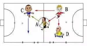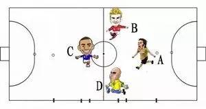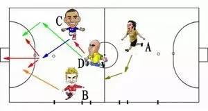 接下来,用ABCD进行编号,红色为球员的传球路线或可能的传球路径
