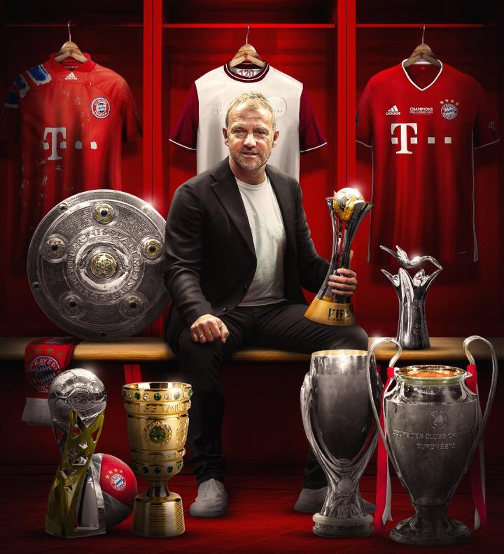 德甲,德国杯,欧冠,德国超级杯,欧洲超级杯,世俱杯,欧洲赛季最佳主帅,拜仁队史最高胜率,出道即巅峰,救火三冠王!弗里克仅仅用了一年,就完成了很多名帅终其一生都无法企及的恢弘伟业。
