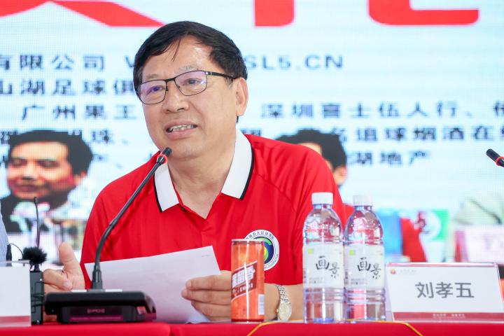 今天我们和千色花强强联合,我非常非常兴奋!我们当年一起为五人足球起步做出了贡献,我们各自在珠超和粤超赛场奋斗、践行了中央精神——体育工作的战略就是——全民健身!我们的“分久必合”为中国体育市场提供了很好的案例!面对佛山体育产业协会会长李可教、番禺足球协会会长陈伟、广东省业余足球协会会长邓国华一众当年的珠超粤超过来人、刘孝五娓娓道来!